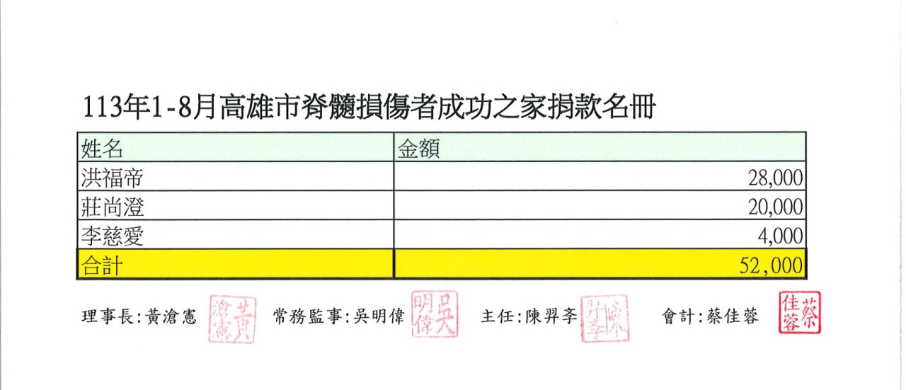 愛心人士捐款名冊